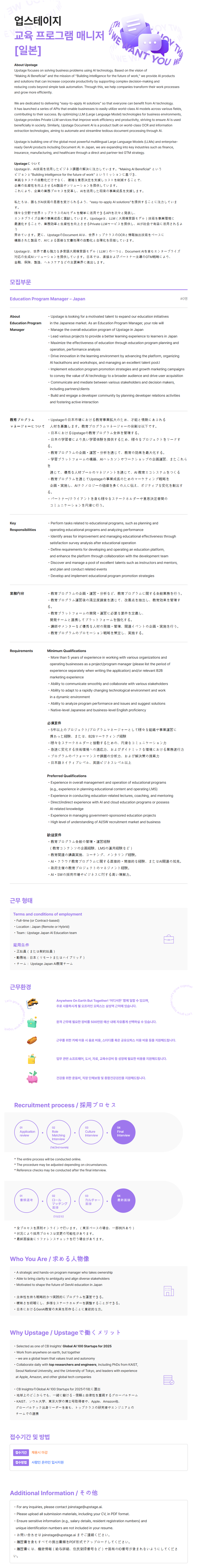 [(주)업스테이지] 교육 프로그램 매니저 [일본]