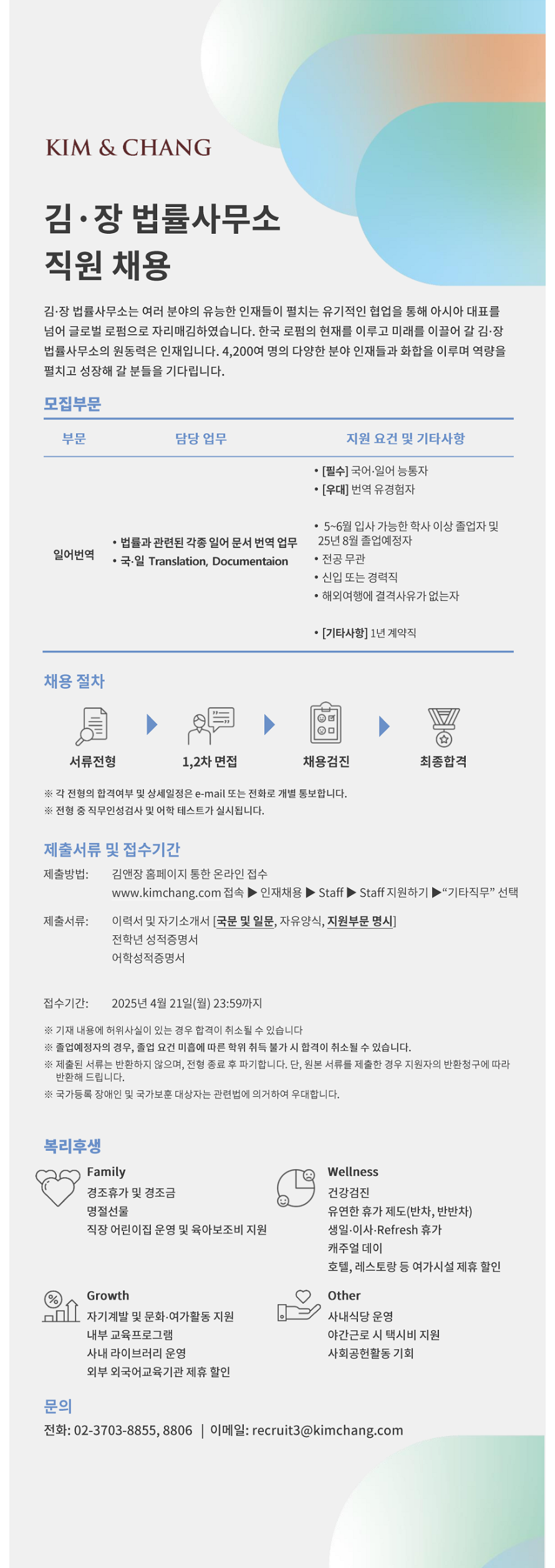 [Kim & Chang (김앤장 법률사무소)] 일어번역 직원 채용