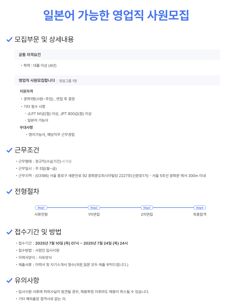 [미쓰비시머티리얼트레이딩(주) 서울지점] 일본어 가능한 영업직 사원모집