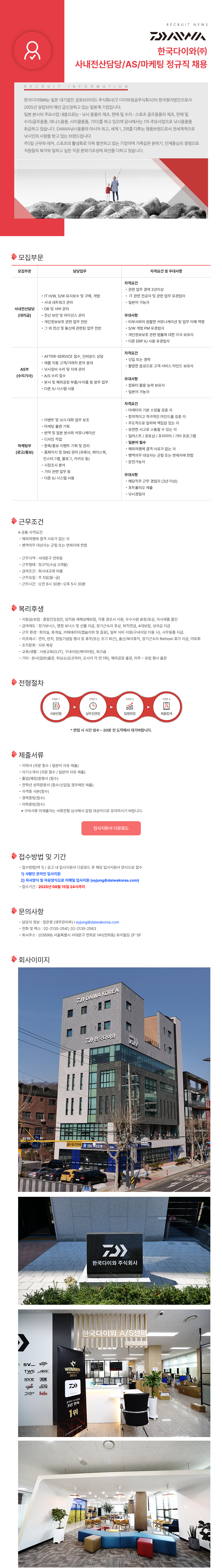 [한국다이와㈜] 사내전산담당/AS/마케팅 정규직 채용