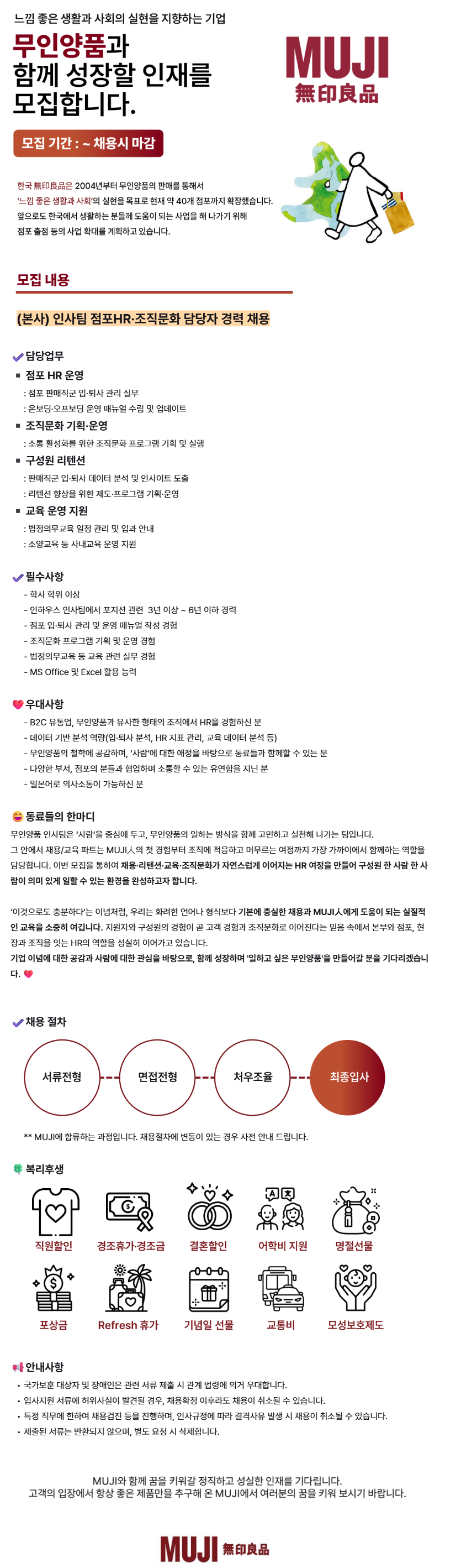 [무인양품㈜] [MUJI] 인사팀 점포HR·조직문화 담당자 경력 채용