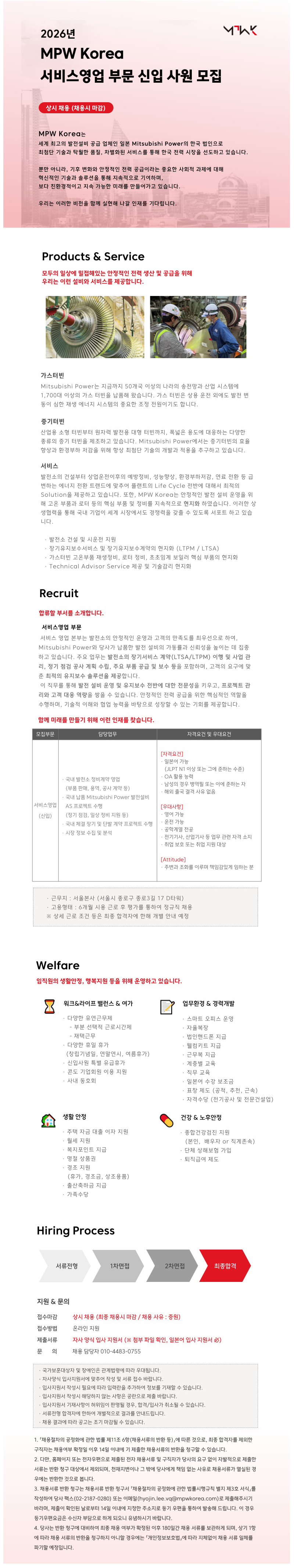 [엠피더블유코리아㈜] [외국계 발전설비기업] 2026년 서비스영업 채용 (신입/상시채용)