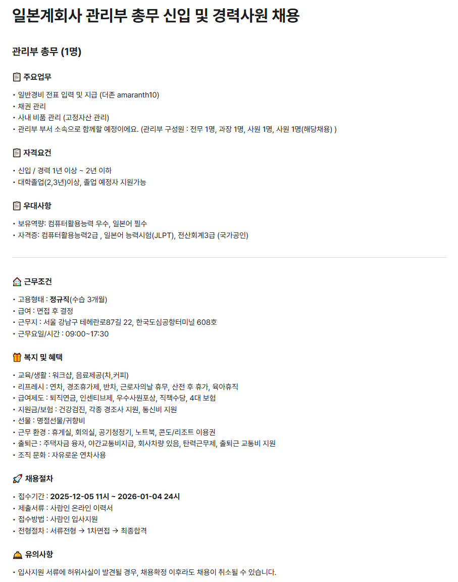 [코리아미카사㈜] 일본계회사 관리부 총무 신입 및 경력사원 채용